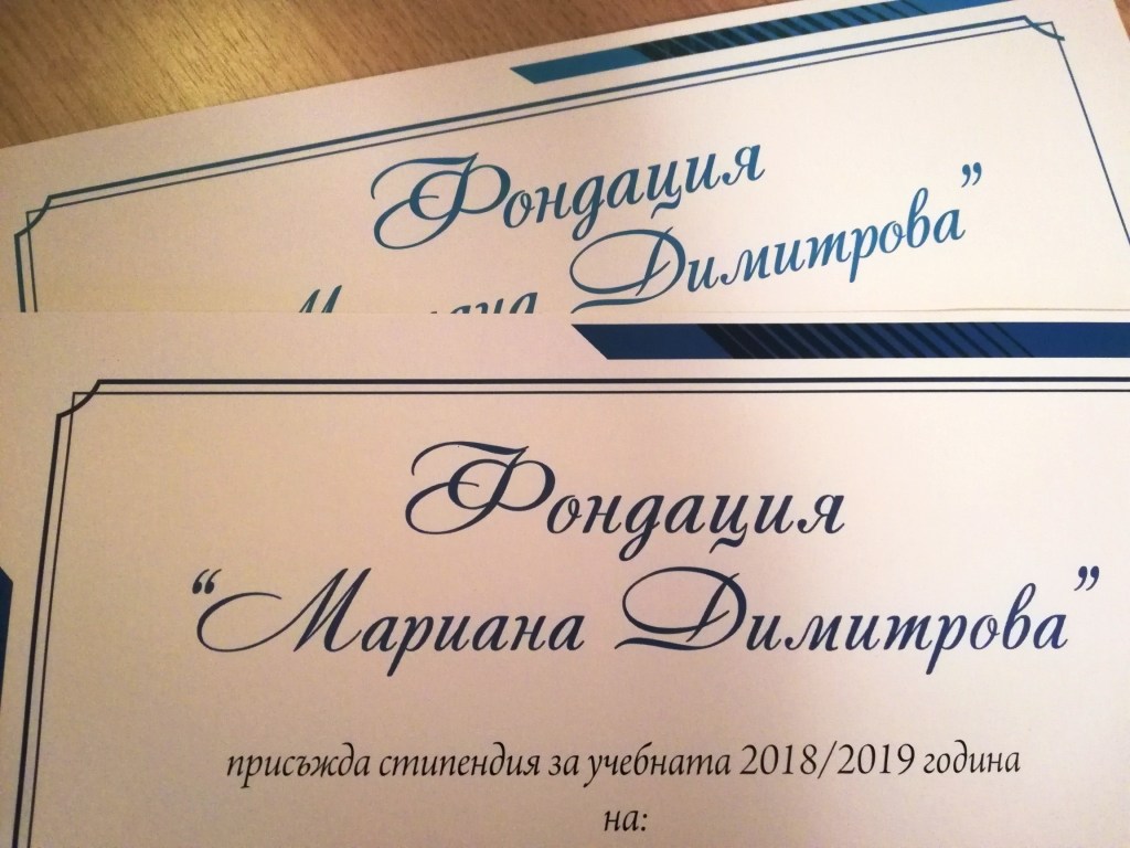 На 27.10.2018 година бяха избрани първите стипендианти на Фондация „Мариана Димитрова“ за учебната 2018/2019 година.